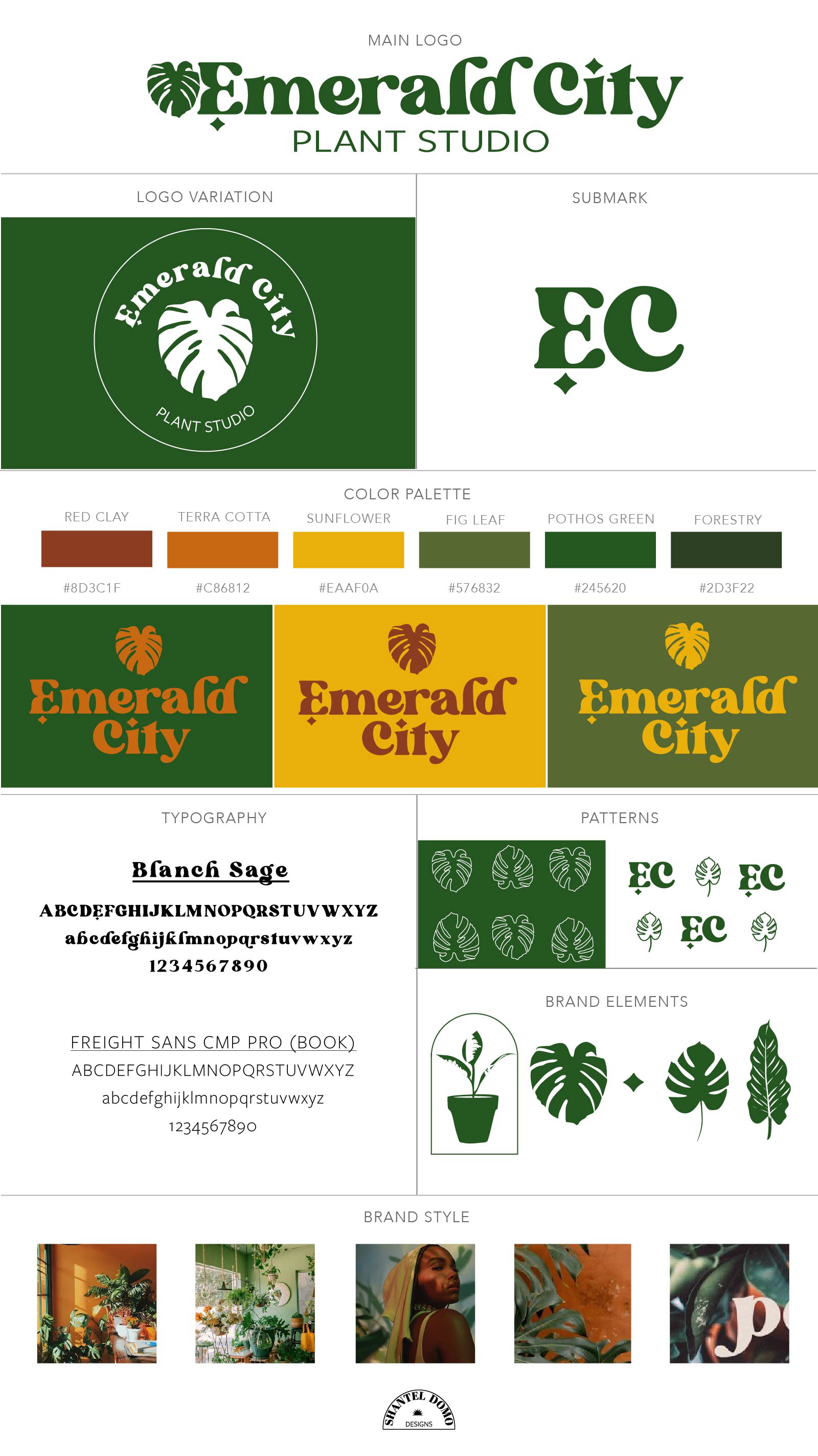 Emerald City Plant Studio is an indoor plant shop based in North Carolina. The founder wanted to evoke a bohemian aesthetic and incorporate plant vectors.