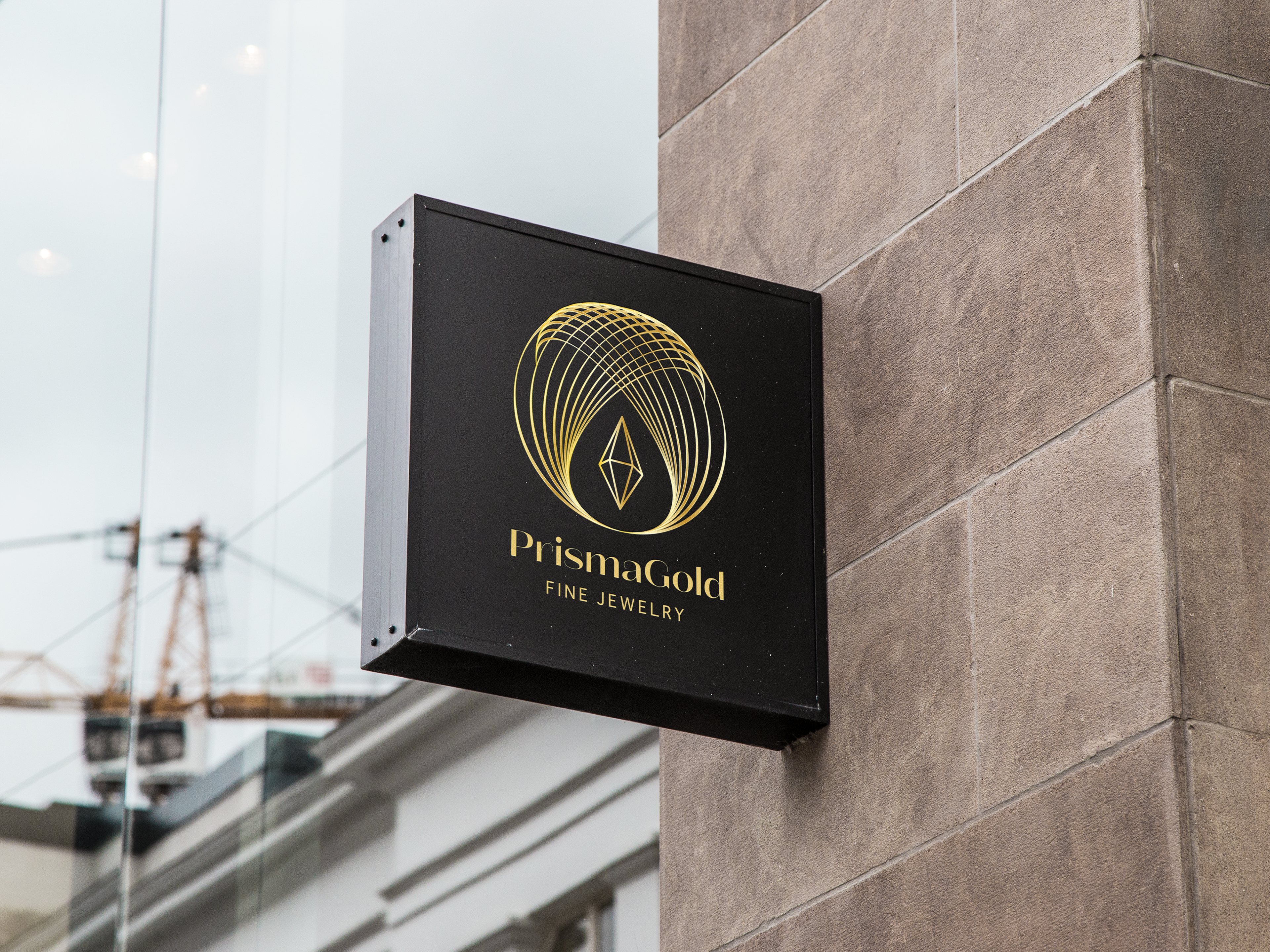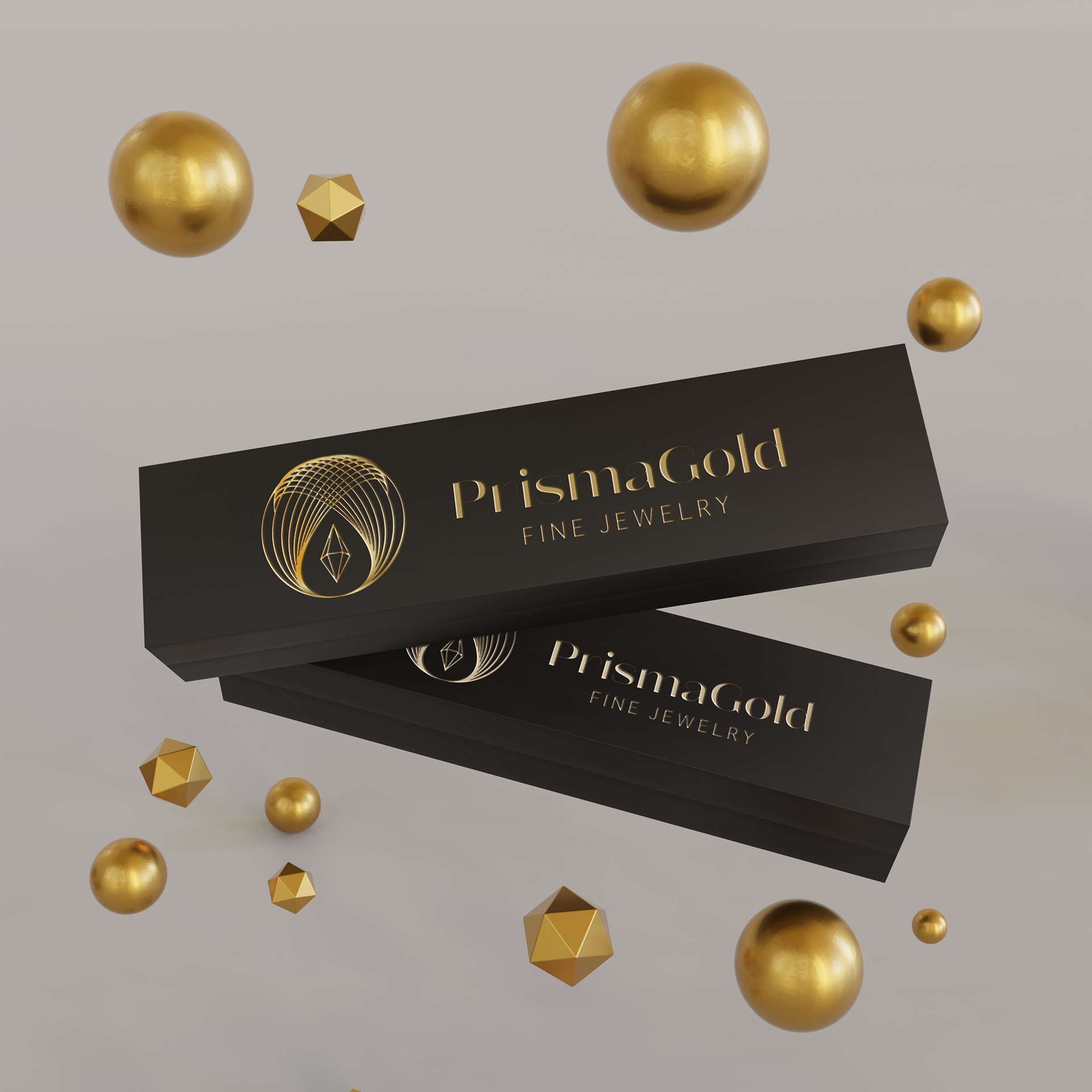 Prismagold is a fictional jewelry company. The goal was to emulate a luxury brand with metallic and geometric design elements.
